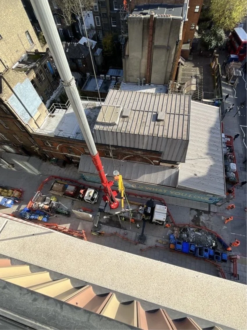 This operation required a transfer lift, where the glass was carefully raised into position using a compact crane and bespoke lifting straps designed to wrap securely around the unit. Once at installation height, the glass was seamlessly transferred to a glass manipulator, operated internally by one of our skilled team members to ensure precise placement.